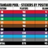 • STANDARD PLAYER POOL – 575 Player Stickers PLUS Color-coded Blanks