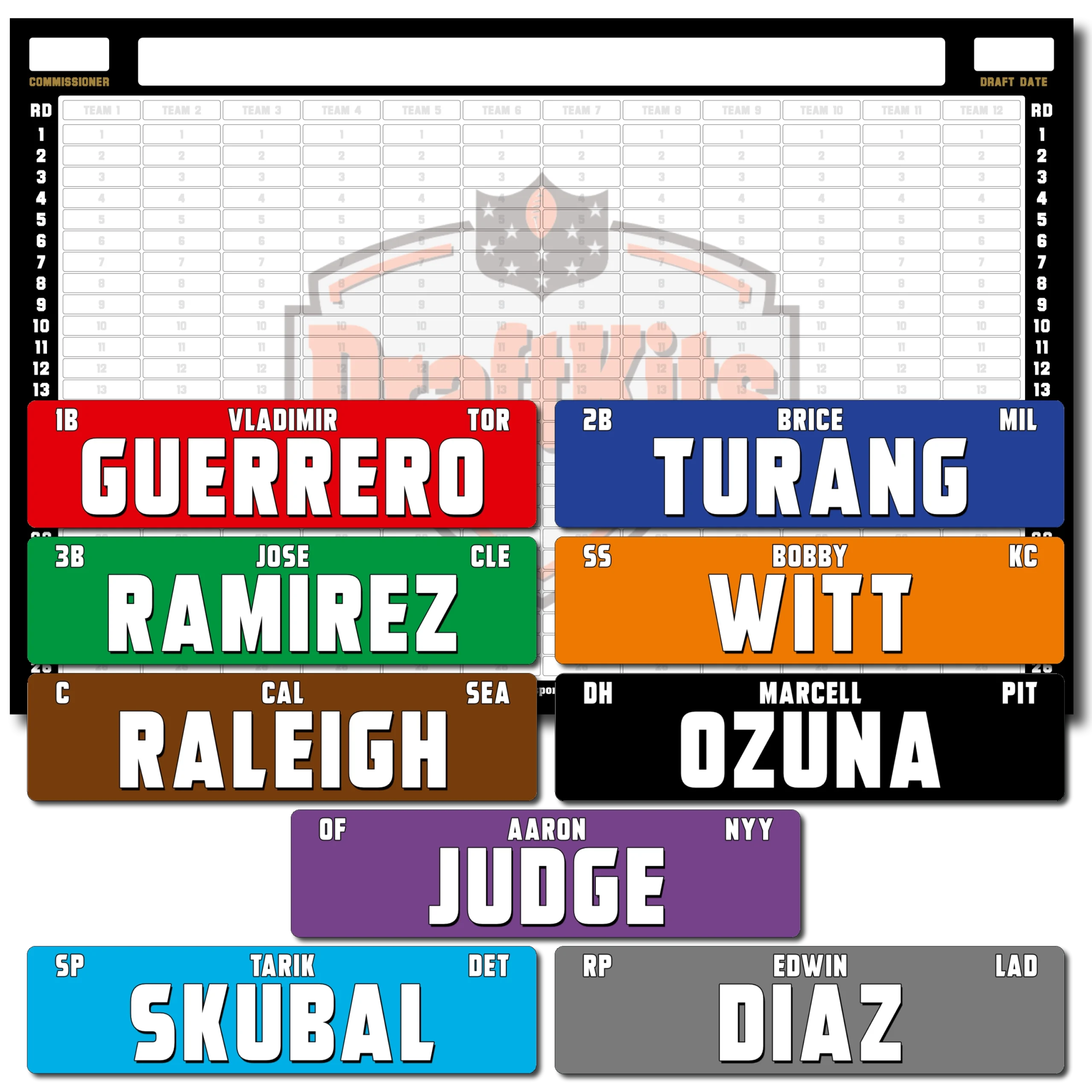 Fantasy Baseball Draft Board Kit – STANDARD MLB Players